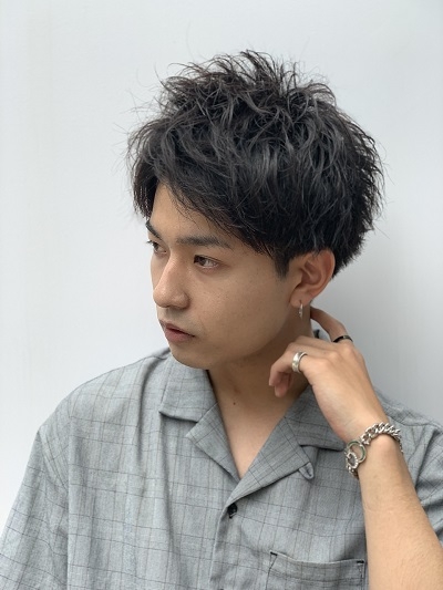 ワックスで全体立ち上げてサイドのボリュームを落とし